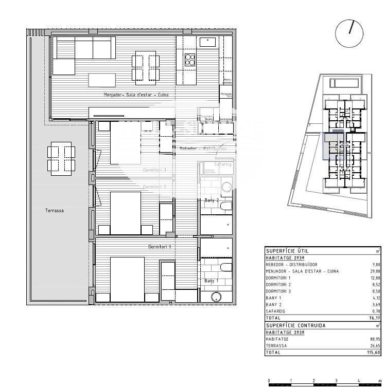 Si desea vivir en un entorno privilegiado cerca de todos los servicios no deje escapar esta oportunidad venga a visitar esta nueva construcción de un edificio plurifamiliar compuesto por 24 viviendas situado en la localidad de Cunit. .Este bloque de nueva construcción ha sido diseñado con un enfoque en la elegancia moderna. Cada piso ha sido meticulosamente diseñado para maximizar el espacio y la luz, creando un ambiente acogedor y atractivo y con los más altos estándares de calidad. Desde los acabados interiores hasta los electrodomésticos de alta gama, como cada pequeño detalle, garantizando la máxima satisfacción para del propietario..Con una superficie construida total de 115,60 m2 de vivienda, y 88,95 m2 construidos interior de vivienda se encuentra distribuidos 3 amplias habitaciones (1 de ellas suitte), salón comedor con cocina americana de 31,43 m2 totalmente equipada con todos los electrodomésticos, 2 baños completos, 1 lavadero con los electrodomésticos integrados de lavadora y secadora marca BALAY, recibidor, terraza de 26,65 m2, suelos porcelanamicos en toda la vivienda, carpintería exterior de aluminio de color gris claro de perfil eficiente y con rotura de puente térmico, carpintería interior con puertas correderas lacadas en blanco..Además, contamos con zona comunitaria con piscina, ascensor y plazas de parking opcionales. .El entorno y municipio:.Cunit se encuentra situado en la comarca del Bajo Penedés y en la provincia de Tarragona aunque está incluido en la tercera corona de la región urbana de Barcelona. Limita con Segur de Calafell (localidad del municipio de Calafell), de la misma comarca, así como con Cubellas, en la comarca del Garraf, y Castellet y Gornal, en la comarca del Alto Penedés, ambos de la provincia de Barcelona..Su paisaje es típicamente mediterráneo, desde los 2,5 km de playas de arena fina, protegidas por los espigones que le proporciona sus formas semicirculares características, pasando por las planicies agrícolas (denominadas Prats de Cunit i Plana del Castell) hasta las sierras del centro (Sierra de Sant Antoni) y norte del municipio, siendo parte de las últimas montañas de la sierra litoral catalana...