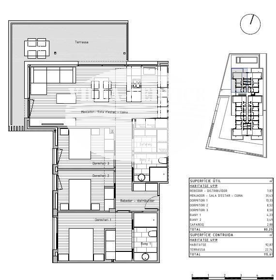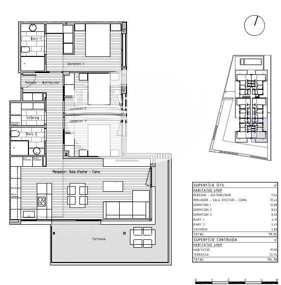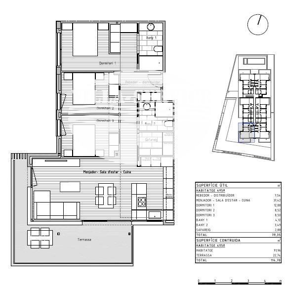 Si desea vivir en un entorno privilegiado cerca de todos los servicios no deje escapar esta oportunidad venga a visitar esta nueva construcción de un edificio plurifamiliar compuesto por 24 viviendas situado en la localidad de Cunit. .Este bloque de nueva construcción ha sido diseñado con un enfoque en la elegancia moderna. Cada piso ha sido meticulosamente diseñado para maximizar el espacio y la luz, creando un ambiente acogedor y atractivo y con los más altos estándares de calidad. Desde los acabados interiores hasta los electrodomésticos de alta gama, como cada pequeño detalle, garantizando la máxima satisfacción para del propietario..Con una superficie construida total de 115,98 m2 de vivienda, y 80,06 m2 construidos interior de vivienda se encuentra distribuidos 3 amplias habitaciones (1 de ellas suitte), salón comedor con cocina americana de 31,43 m2 totalmente equipada con todos los electrodomésticos, 2 baños completos, 1 lavadero con los electrodomésticos integrados de lavadora y secadora marca BALAY, recibidor, terraza de 22,74 m2, suelos porcelanamicos en toda la vivienda, carpintería exterior de aluminio de color gris claro de perfil eficiente y con rotura de puente térmico, carpintería interior con puertas correderas lacadas en blanco..Además, contamos con zona comunitaria con piscina, ascensor y plazas de parking opcionales. .El entorno y municipio:.Cunit se encuentra situado en la comarca del Bajo Penedés y en la provincia de Tarragona aunque está incluido en la tercera corona de la región urbana de Barcelona. Limita con Segur de Calafell (localidad del municipio de Calafell), de la misma comarca, así como con Cubellas, en la comarca del Garraf, y Castellet y Gornal, en la comarca del Alto Penedés, ambos de la provincia de Barcelona..Su paisaje es típicamente mediterráneo, desde los 2,5 km de playas de arena fina, protegidas por los espigones que le proporciona sus formas semicirculares características, pasando por las planicies agrícolas (denominadas Prats de Cunit i Plana del Castell) hasta las sierras del centro (Sierra de Sant Antoni) y norte del municipio, siendo parte de las últimas montañas de la sierra litoral catalana.