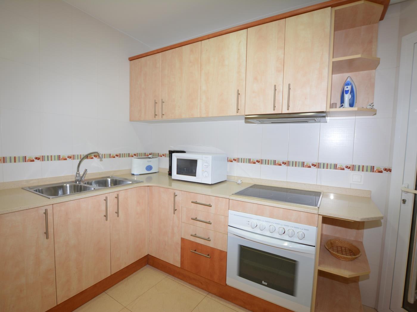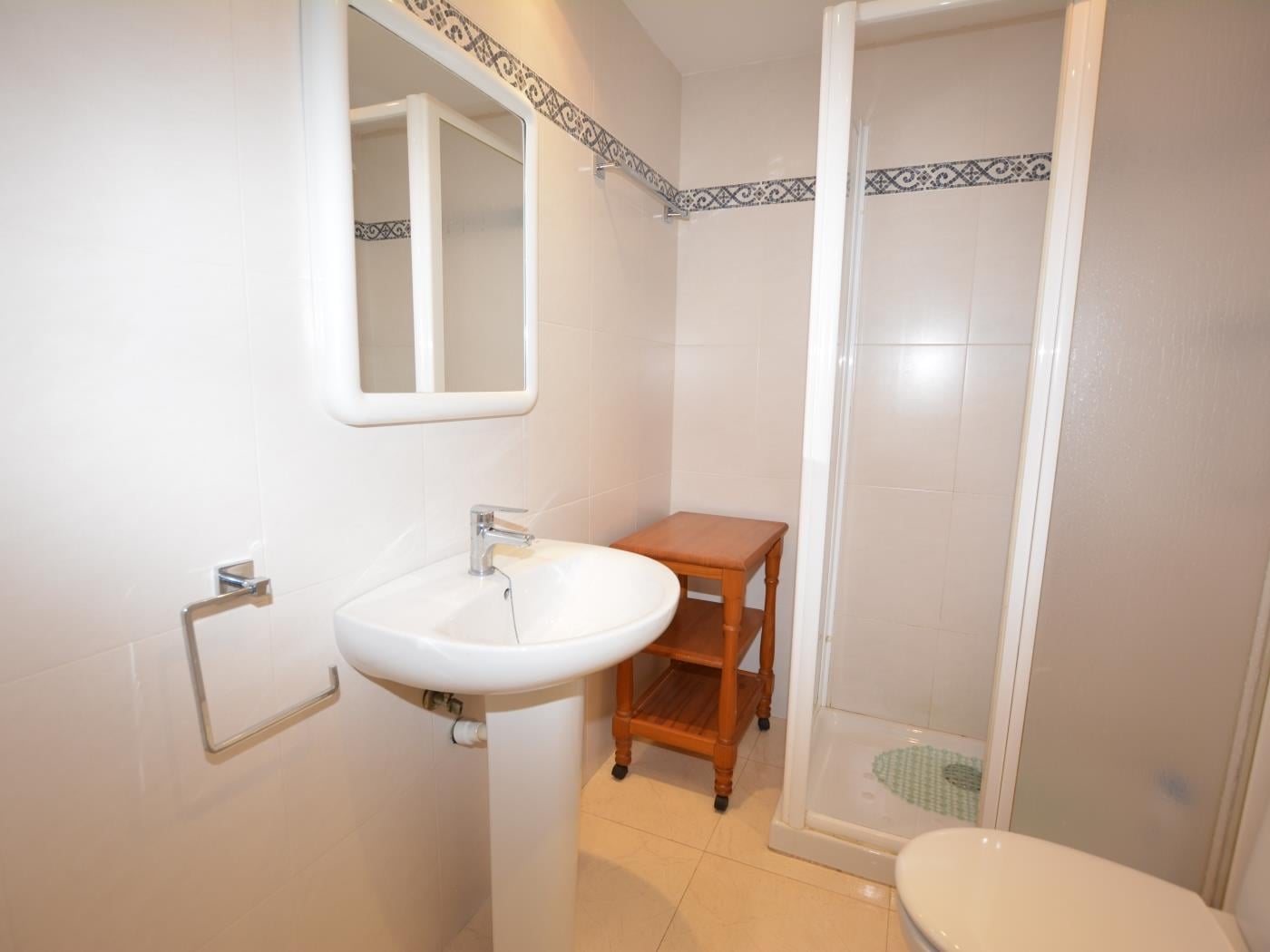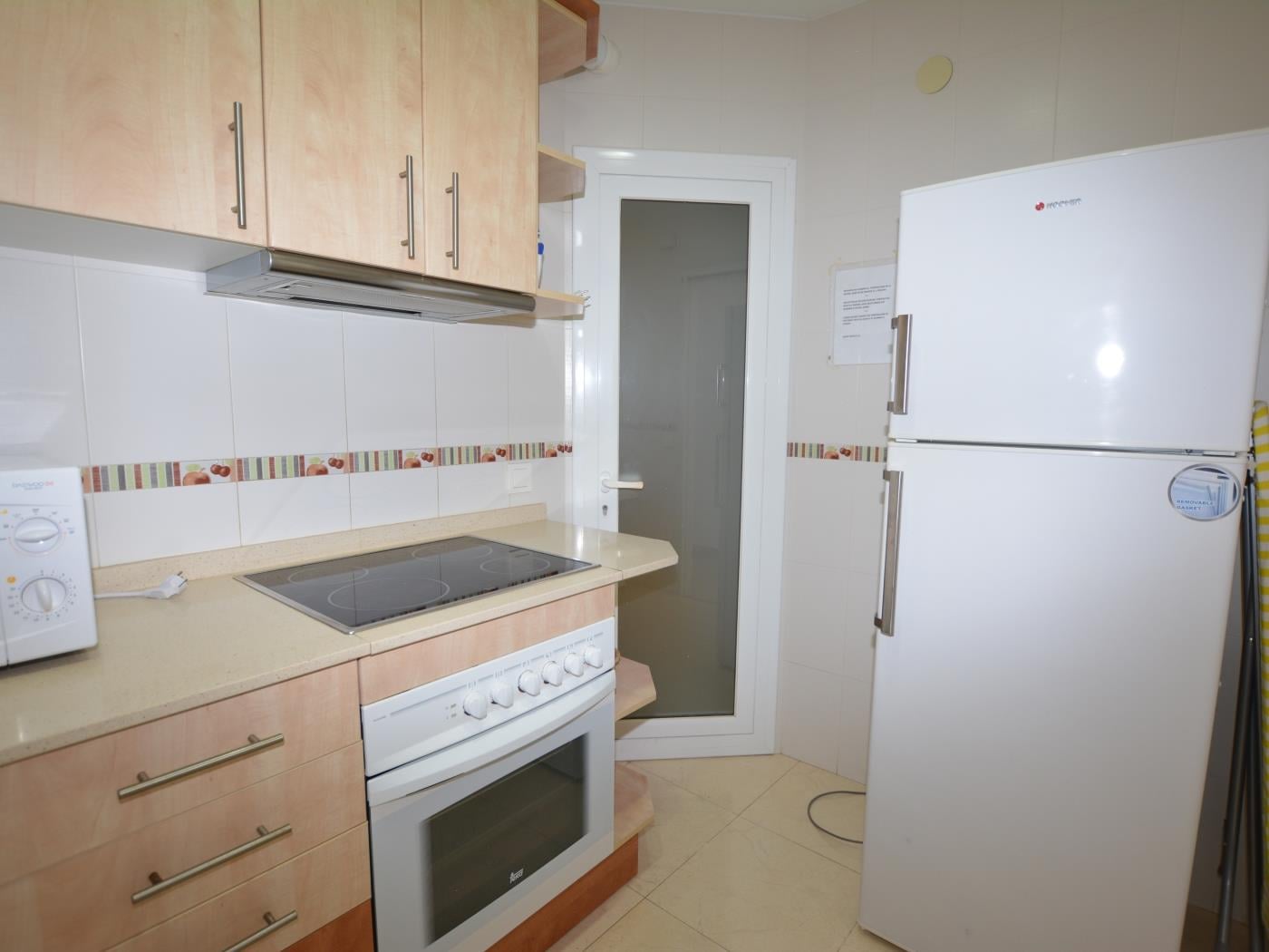 The apartment 'Leonor 1º 2ª' is located on the beachfront and has a terrace with sea views. It has a total of 2 bedrooms (1 room with 1 double bed and 1 room with 2 single beds). Sofa bed (single) in the dining room. Equipped kitchen. 1 Toilet with shower. Wifi