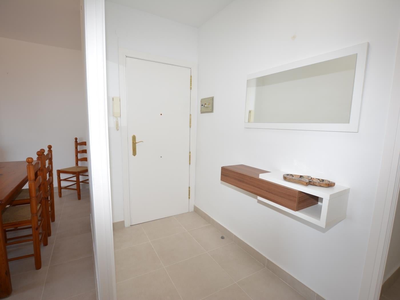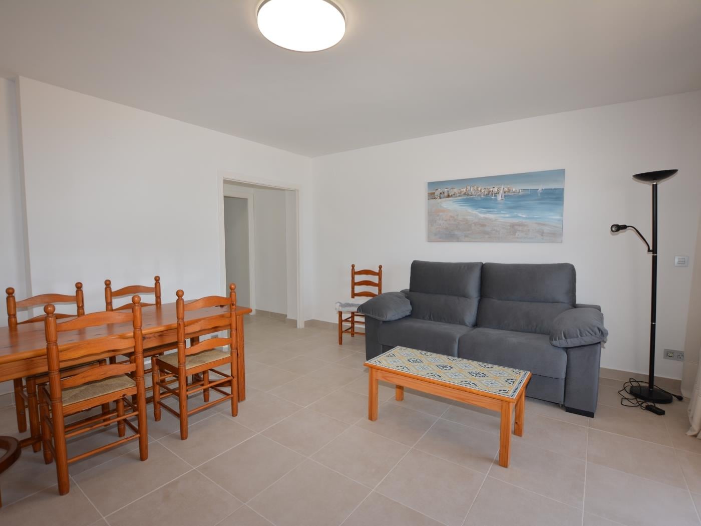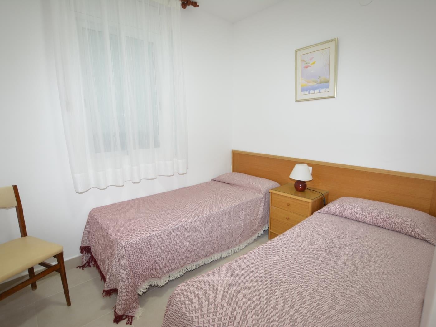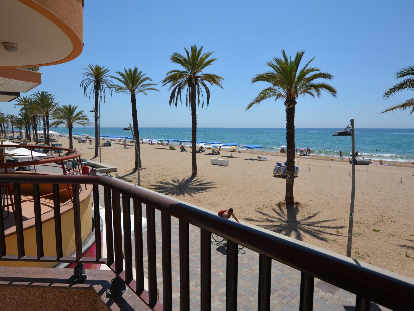 The apartment 'Leonor 1º 2ª' is located on the beachfront and has a terrace with sea views. It has a total of 2 bedrooms (1 room with 1 double bed and 1 room with 2 single beds). Sofa bed (single) in the dining room. Equipped kitchen. 1 Toilet with shower. Wifi
