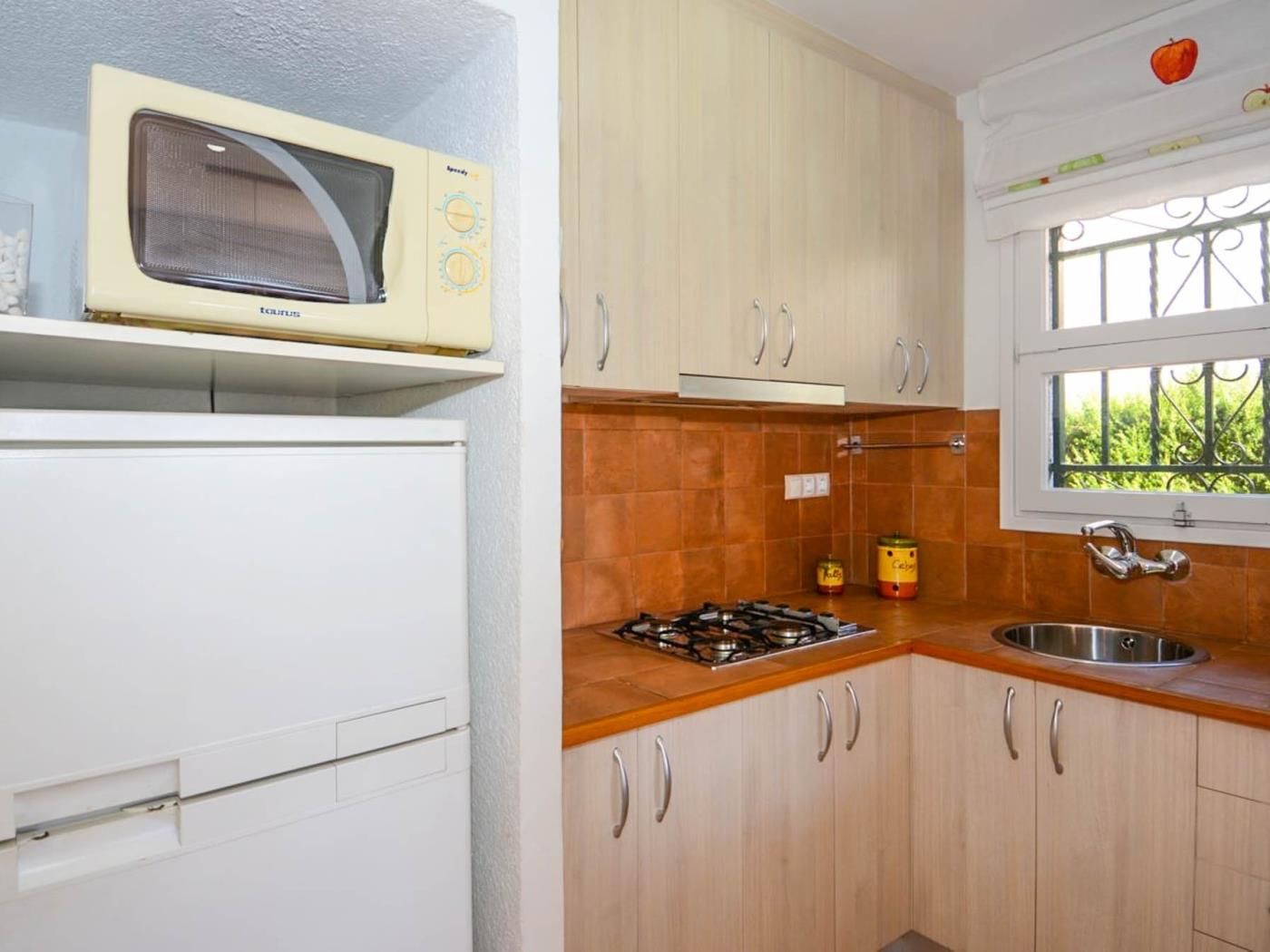 La maison dispose de 2 chambres, d’un séjour confortable avec télévision à écran plat et d’une cuisine équipée avec réfrigérateur et micro-ondes. Elle comprend également la climatisation ainsi qu’une salle de bain avec bidet.