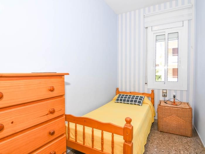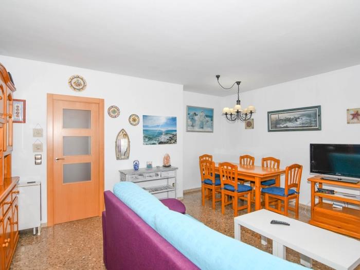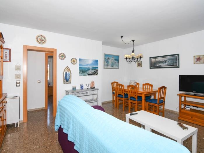 L’appartement se compose d’un salon-salle à manger avec accès direct à la terrasse, d’une cuisine indépendante entièrement équipée, de 2 chambres doubles, 1 chambre individuelle et 1 salle de bain. Il dispose de la climatisation, d’une télévision à écran plat et d’espaces fonctionnels.